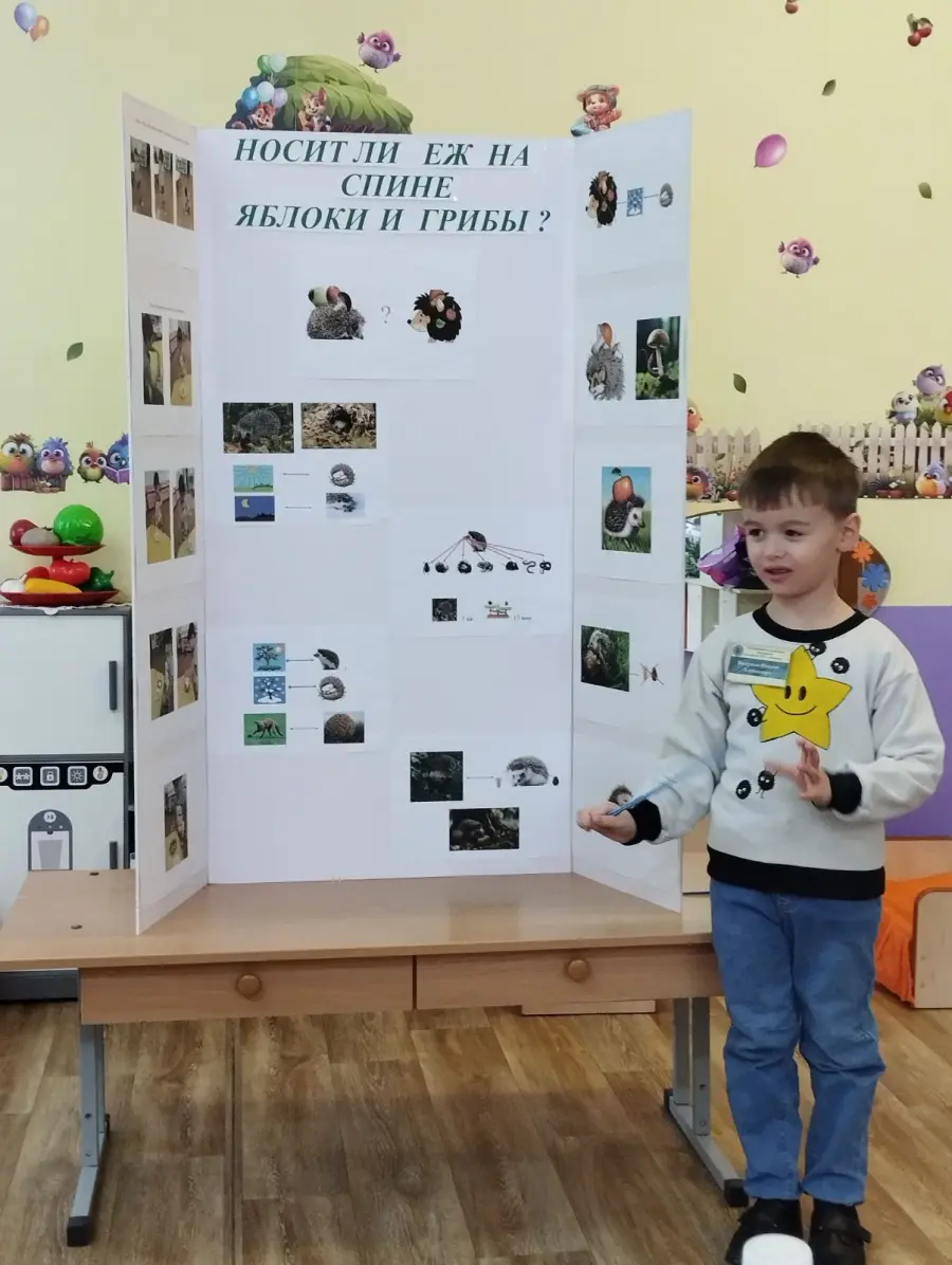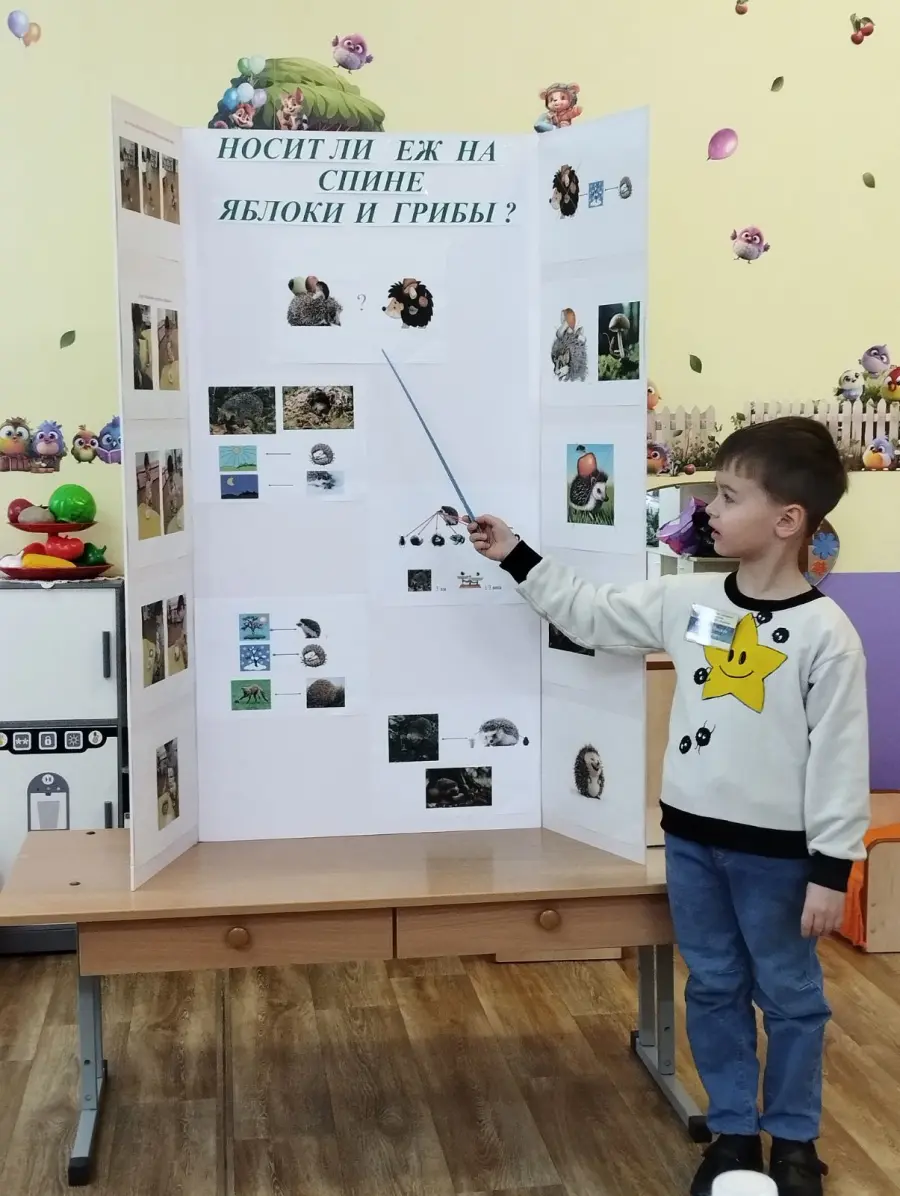 Сегодня на базе ГУО «Дошкольный центр развития ребёнка г. Борисова " состоялся районный этап фестиваля «Я - исследователь". Наше учреждение представлял Васильев Никита, воспитанник старшей группы в номинации "Экологический калейдоскоп" с темой "Носит ли еж на спине яблоки и грибы?"
