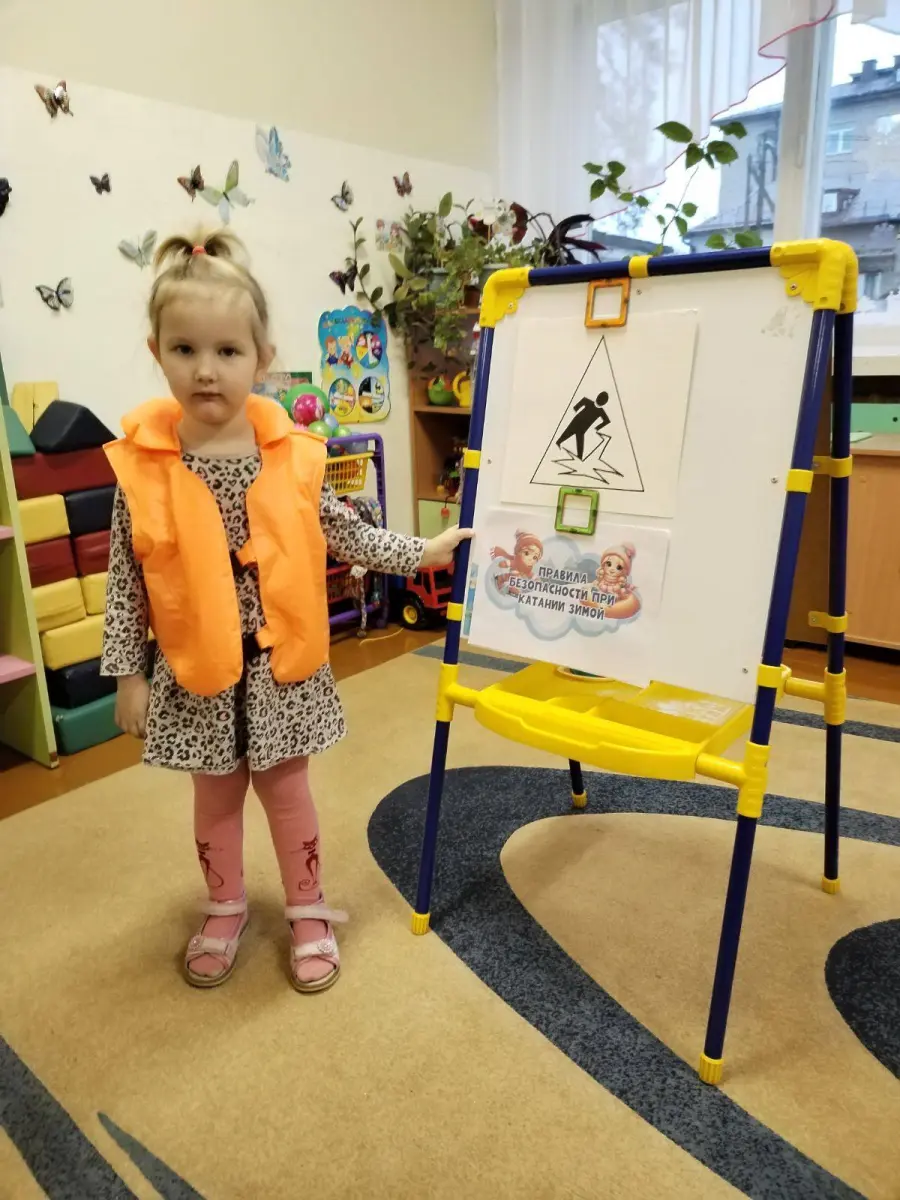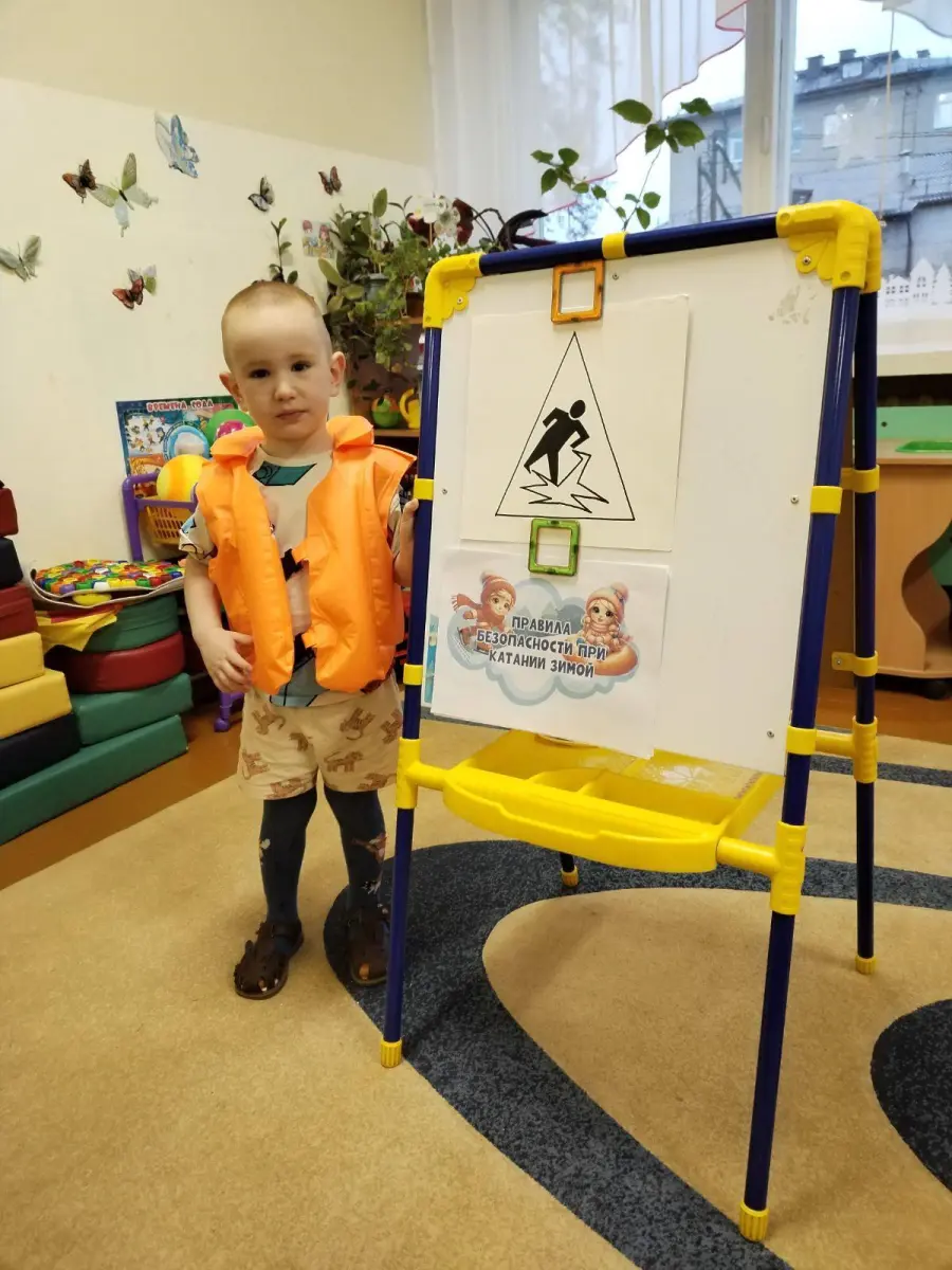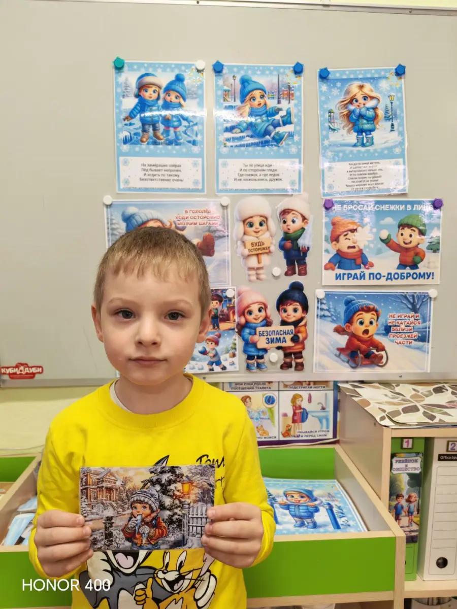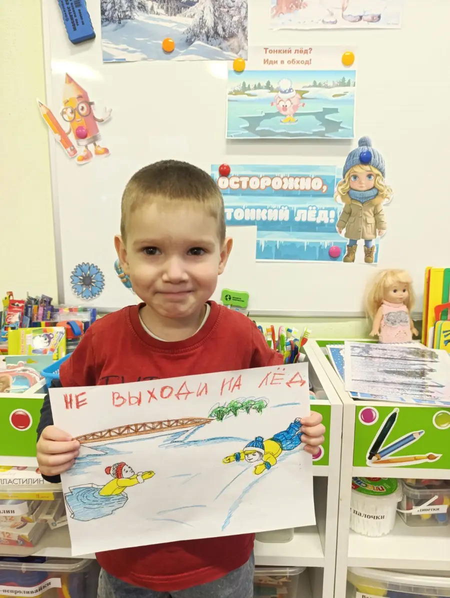Старшие дошкольники с большим интересом включились в занятие «Правила безопасности зимой». В течение дня дети изучали предметы для спасения на воде (спасательный круг, жилет, веревка), обыгрывали ситуацию «Где можно покататься на коньках?», раскрашивали тематические раскраски и обсуждали плакаты: «Безопасная зима», «Осторожно! Зимняя дорога!» и «Осторожно! Тонкий лед на водоемах!». Итогом дня стал просмотр познавательного видеоролика «Тонкий лед опасен» и серии «Теплее, еще теплее» из «Азбуки безопасности».