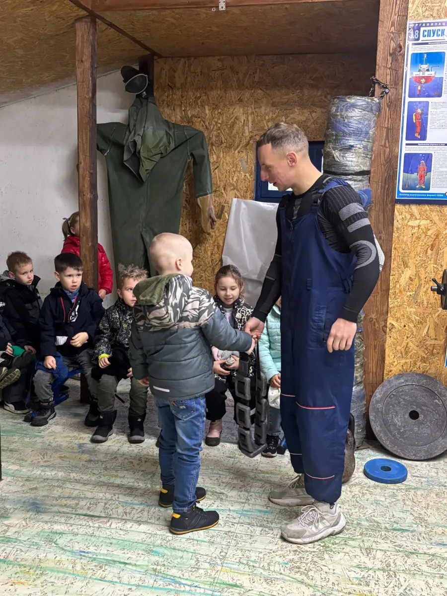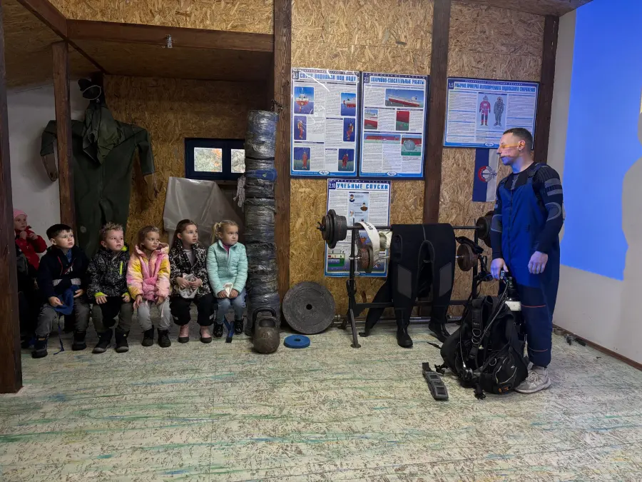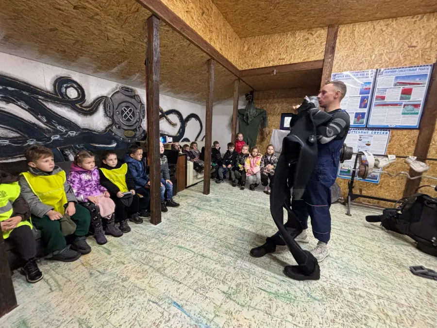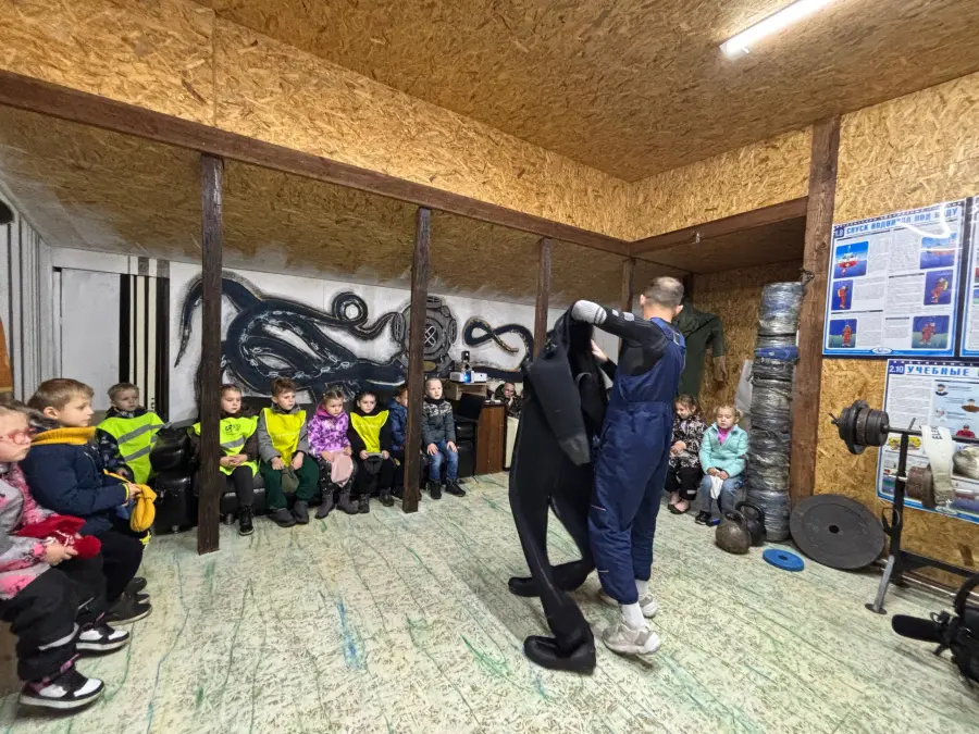 Сотрудники отряда спасений на водах напомнили о правилах поведения на водоёмах, рассказали, как вести себя в различных экстремальных ситуациях на пляже, познакомили ребят с правилами пользования спасательным жилетом, дали возможность примерить на себя костюм водолаза со всем необходимым оборудованием, что вызвало огромный интерес и восторг. В завершении экскурсии ребята посмотрели мультфильм "Волшебная книга МЧС".